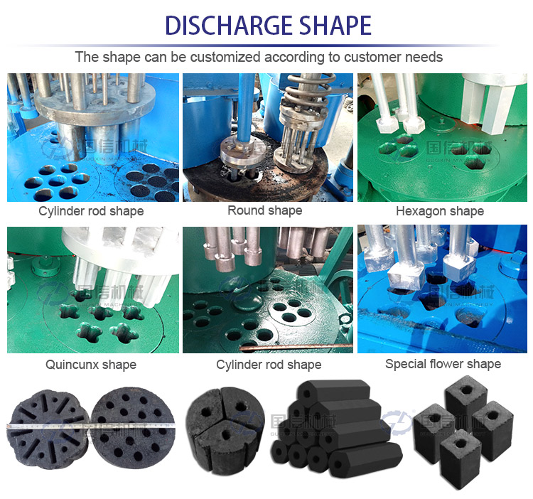 The honeycomb charcoal production line is a system specially designed for the production of honeycomb charcoal products. Biomass raw materials are made into a honeycomb structure through carbonization, mixing, molding and drying processes. These honeycomb charcoal products are usually used as a fuel source and are very popular in the fields of barbecue and industrial heating due to their excellent combustion performance.Guoxin has mature honeycomb charcoal production line, can equip machines according to your needs.