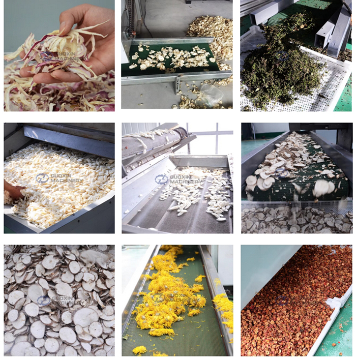 Through the hot air distribution unit, the hot air is transported to the mesh belt, the material from top layer to bottom layer, Finally the dried onion will be taken out by hoisting discharge conveyor.