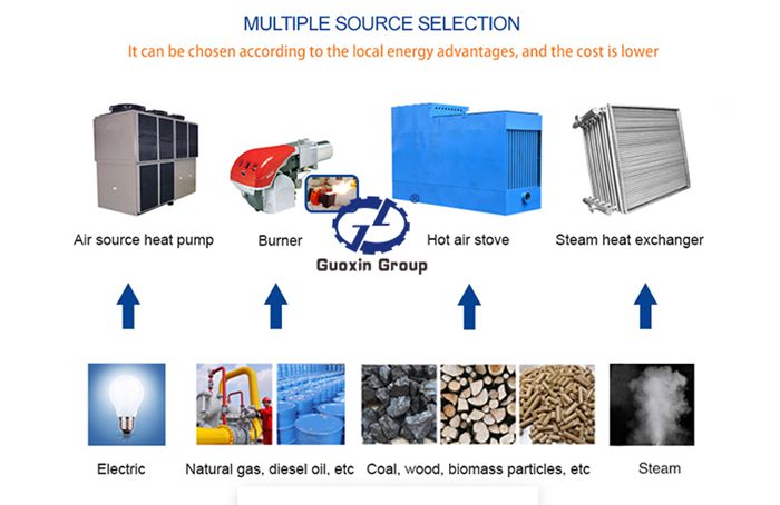 We are using heat exchange furnace providing heat. It can use coal,gas,wood, diesel,biomass pellet,electricity,diesel etc. The fuel and material not contactd with each other, only clean hot air enter into the dryer.